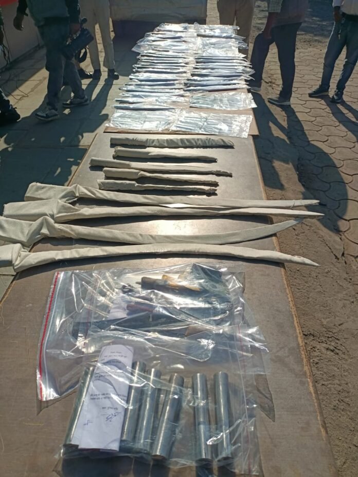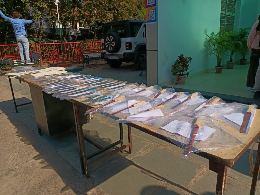 16 दिसम्बर को जरिये मुखविर सूचना मिली कि थाने के पीछे वापू नगर में कुछ लोग अवैध रूप से छुरी / तलवार वनाने व वेचने का काम करते है कि सूचना पर थाना प्रभारी निरीक्षक निरूपा पाण्डेय द्वारा थाने की अलग अलग 4- टीम गठित कर वापू नगर झुग्गियों में संदिग्ध रूप से काम हथियार वेचने व वनाने का काम कर रहे लोगों के घर पर दो झुग्गियों में प्रथक – प्रथक दविस दी गई तो दो अलग अलग टीमों को भारी मात्रा में, छुरी, तलवार सहित 75 छुरी, 04 तलवार सहित कुल 79 छुरी तलवार पुलिस ने बरामद किये आरोपीगण दुर्गेश विश्वकर्मा, व चंदन विश्वकर्मा के घर से पकडे छुरी, तलवार रखने व क्रय विक्रय करने के सम्बध में लायसेंस होने के सम्बध में पूछताछ किया जो किसी के पास कोई चाकू, छुरी, तलवार रखने व क्रय विक्रय का लायसेंस नही होना पाया गया जिनके विरूध थाना कमला नगर में आरोपीगणों के प्रथक प्रथक कृत्स धारा 25 आर्म्स एकट, 25(1- AA) आर्म्स एक्ट का पायाजाने से प्रथक प्रथक अपराध कायम कर विवेचना में लिया गया। बाकि अभी ओर तथ्यों के आधार पर विवेचना की जा रही है।