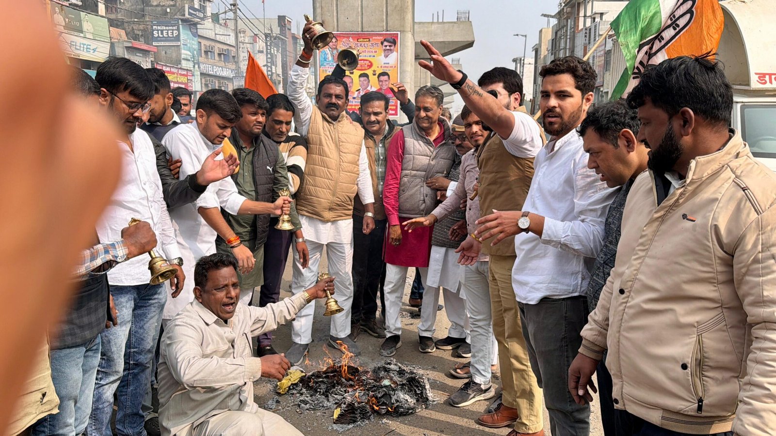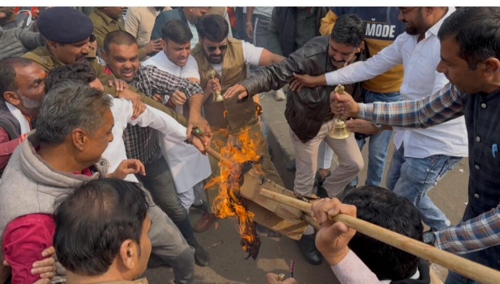 मंत्री कैलाश विजयवर्गीय का पुतला दहन विरोध प्रदर्शन